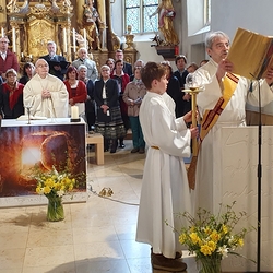 Am frühen Ostermorgen gingen auch wir als Glaubensgemeinschaft durchs Dunkel zum Licht und feierten in unserer Kirche die Auferstehung - Erlösung von Tod und Trauer, Geschenk neuen Lebens!