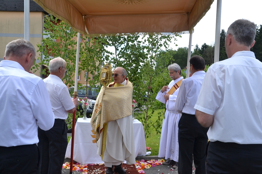 So konnte nach der heiligen Messe mit Vikar Norbert Glaser und Diakon Michi Zepf die Prozession wie geplant ihren Weg nehmen. An den vier Altären, die liebevoll geschmückt waren, wurde das Wort Gottes verkündet und Lobpreis, Dank und Bitte in Gebeten und Liedern ausgedrückt.